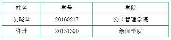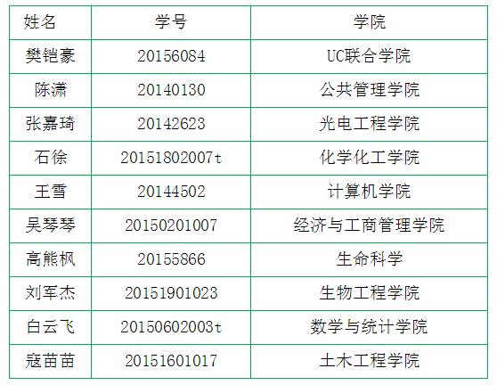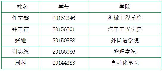 经个人申报,学院推荐,学校评审小组评选,现将我校2017年CASC奖学金、赠与亚洲.滕氏奖学金、宋庆龄基金会丰田助学金、隆福行奖学金评审结果公示如下,如有异议者,请于本月31日前联系校学生资助管理中心,随后名单将报送资助方审核。联系电话:65112427(王老师)