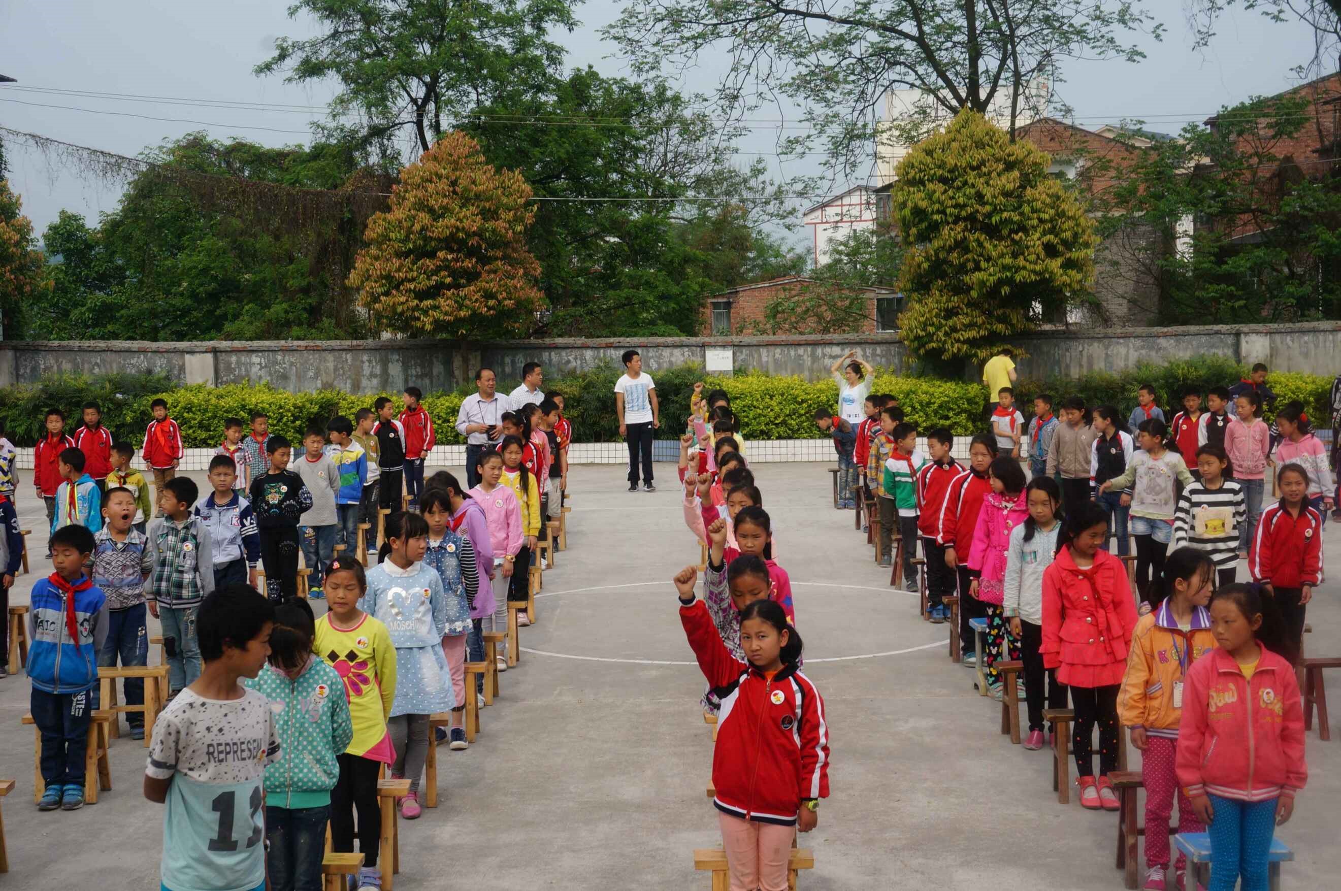 5月6日早上7点半第四小组就到达了冷水关乡中心小学。另外的小组也相继抵达目的学校并展开活动。