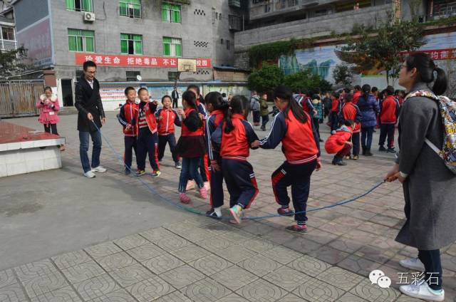 在教室的走道上行走时,很多孩子很突然递给我一朵拉花“姐姐,这个送给你”然后就是略带不好意思的但很纯真的微笑,让我还有些惊喜得不知所措。后来下去照相时,更多的孩子边下楼边递给我一些他们的折纸,对他们来说的有意思的东西顿时对我有意义起来。”参与此次活动的志愿者拍彭景笑着说。提到这次支教活动,她说:站在教室后排时和后面的孩子们聊天,他们会给我讲一些他们平时的小习惯与爱好。喜欢蓝色,喜欢数学老师,很小的事情通过他们讲出来就会觉得温暖。跳大绳的时候,由于四年二班得过运动会上跳绳是第二名,所以孩子们会很直白地告诉我们“摇得太慢啦”然后很骄傲的开始讲述与展示他们的技巧,看见他们的充满活力的身影,感觉自己仿佛也回到了无忧无虑的时光。第一次支教,虽然都只是一些小事,但却令我感动。我想,每一件小事都是志愿活动经历中的一颗星星,最后才会在回忆中铸成一片星之璀璨。